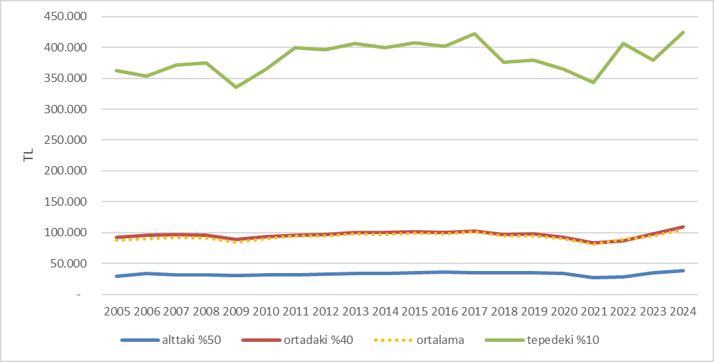 Kaynak: TÜİK Gelir Dağılımı verileri, TÜİK Ulusal Hesaplar verileri ve kendi tahminlerimiz.