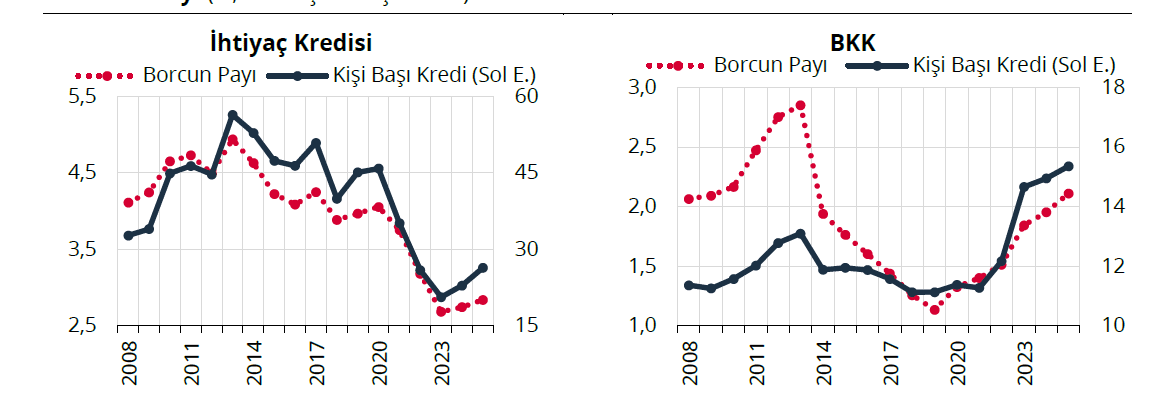 Grafik 1: Tüketici kredilerinde kişi başı borç ve borcun gelire oranı