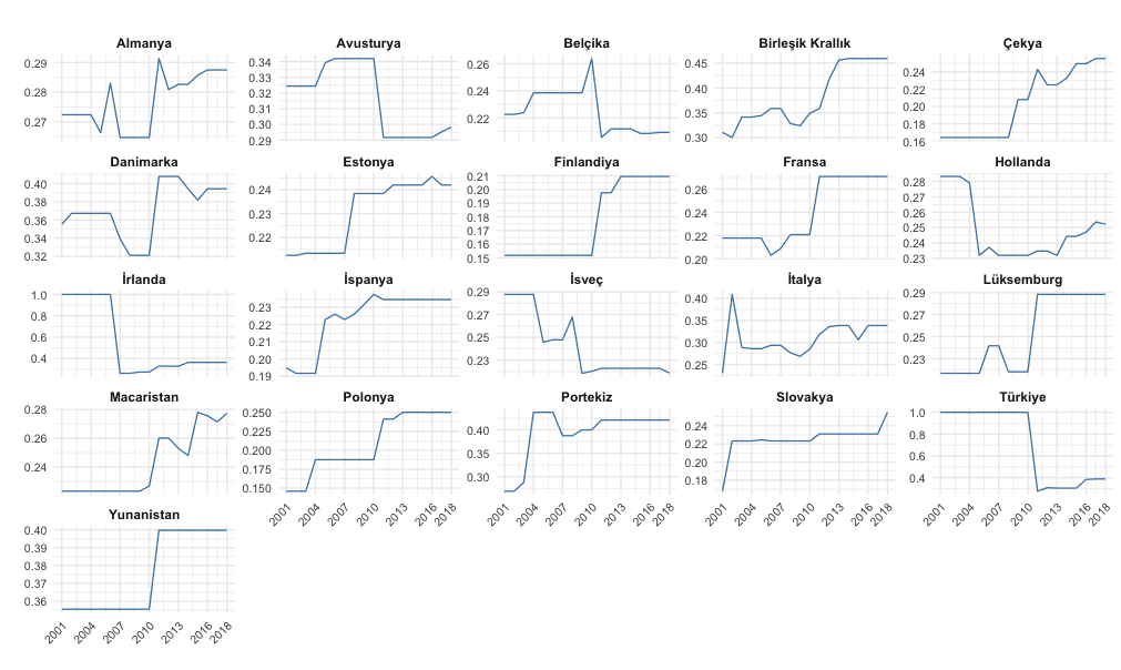 Not: Dünya Bankası Dünya Kalkınma Göstergeleri veri setini kullanarak kendim oluşturdum. Avrupa Ortalamasına dahil edilen ülkeler Şekil 1’in altında not edilen ülkelerle aynıdır.